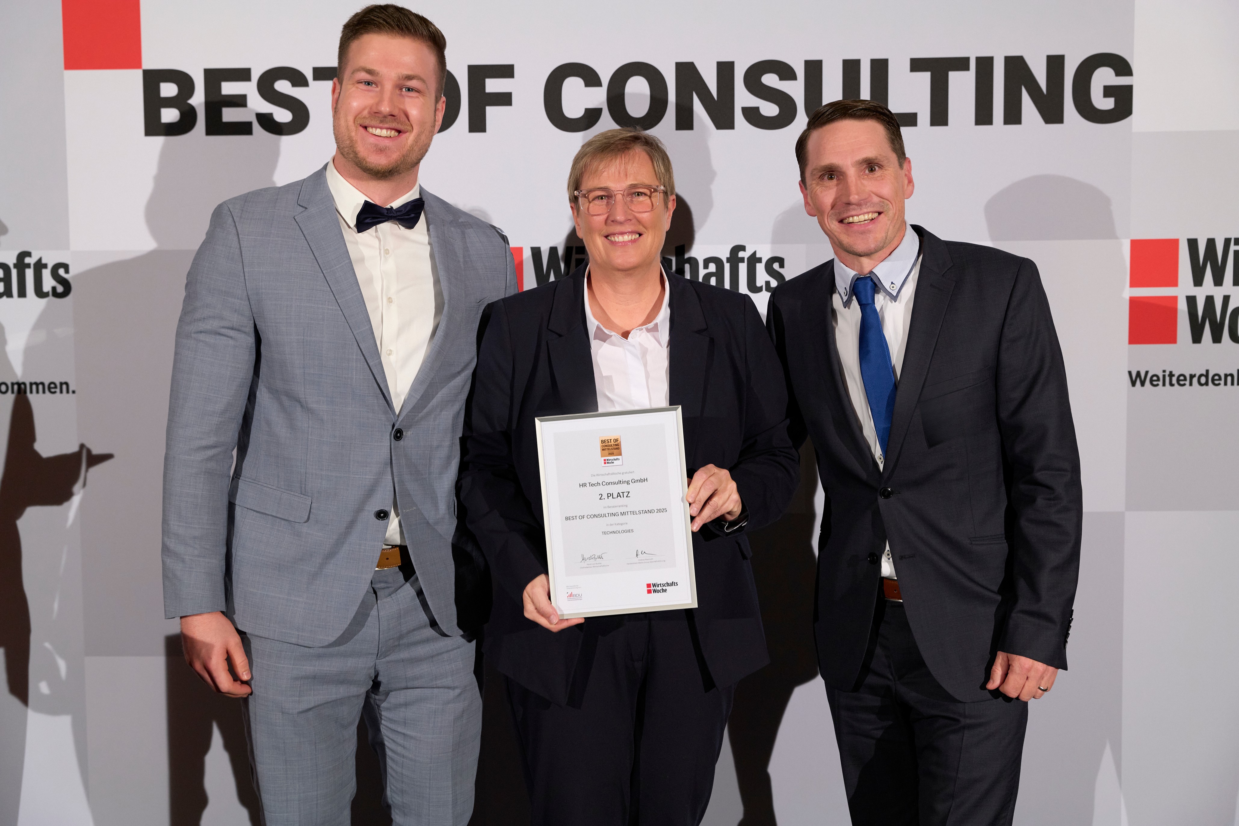 Die HR Tech Consulting GmbH zählt erneut zu den erfolgreichsten Beratungshäusern Deutschlands. Beim Wettbewerb „Best of Consulting“ der WirtschaftsWoche wurde das Unternehmen mit dem 2. Platz in der Kategorie „Mittelstand Technology“ ausgezeichnet. Die Platzierung wurde am 20. November im Rahmen der Preisverleihung in Düsseldorf bekannt gegeben.
